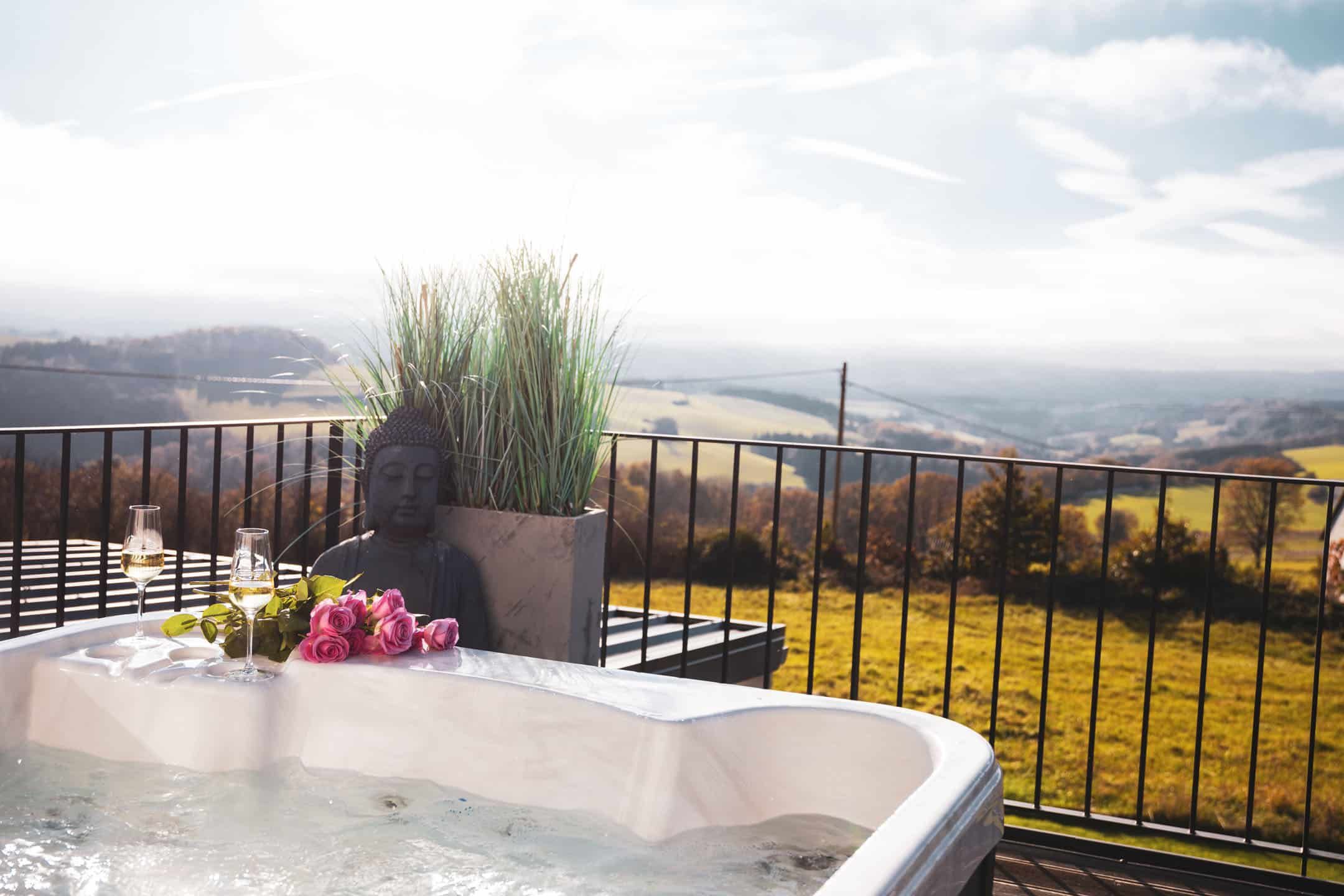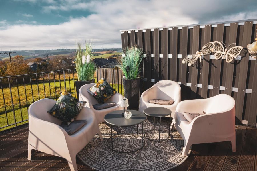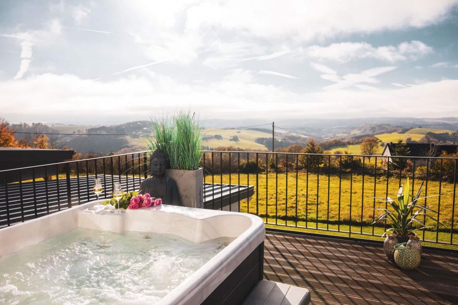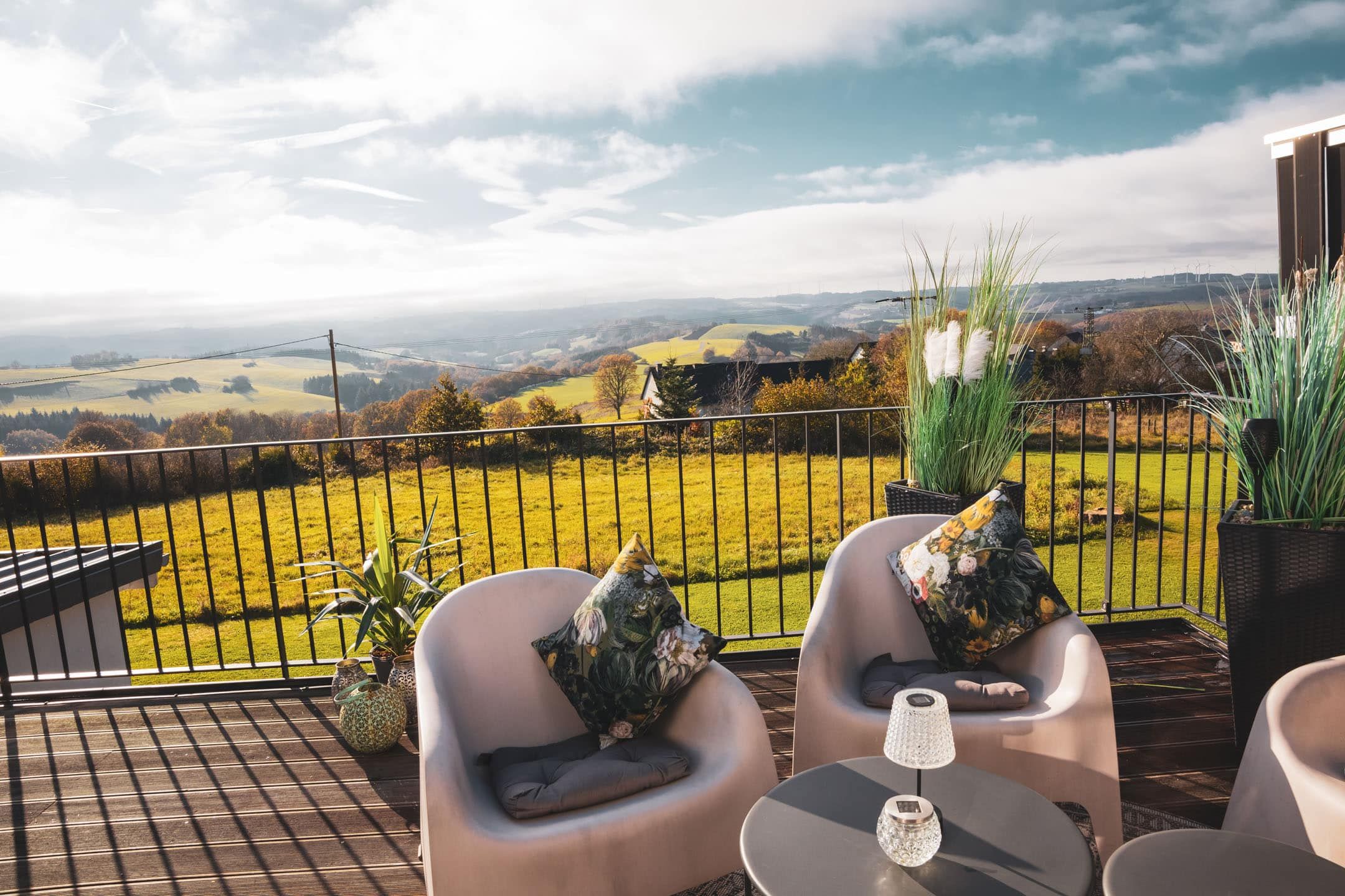 Vor Jahrzehnten brachten die Bewohner des Hauses hier ihre Ernte unter und fütterten damit ihr Vieh – heute residieren Sie hier als Gutsherr oder -herrin mit Blick über die gesamte Westeifel! Über 30 km schweift Ihr Blick auf der 25 qm großen Dachterrasse in die Ferne. Sie entscheiden selbst, wie Sie diese nutzen: Ob im Außenwhirlpool oder einfach bei einem Glas Wein in der edlen Lounge.